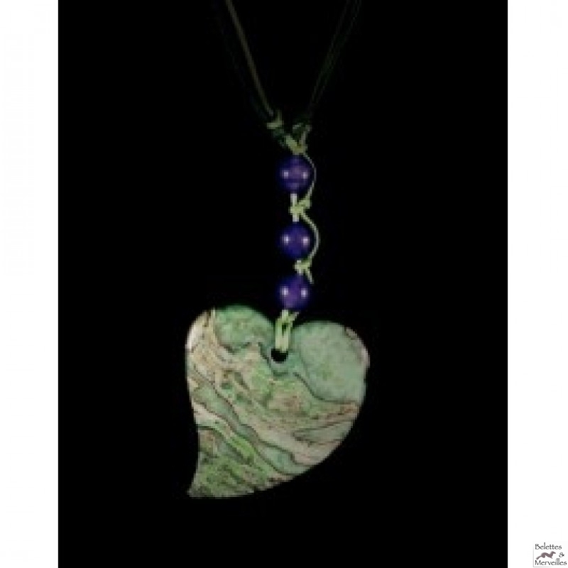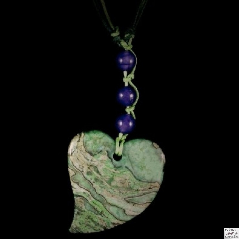 Pendentif d'agate peau de tigre et perles d'améthyste. Indisponible.