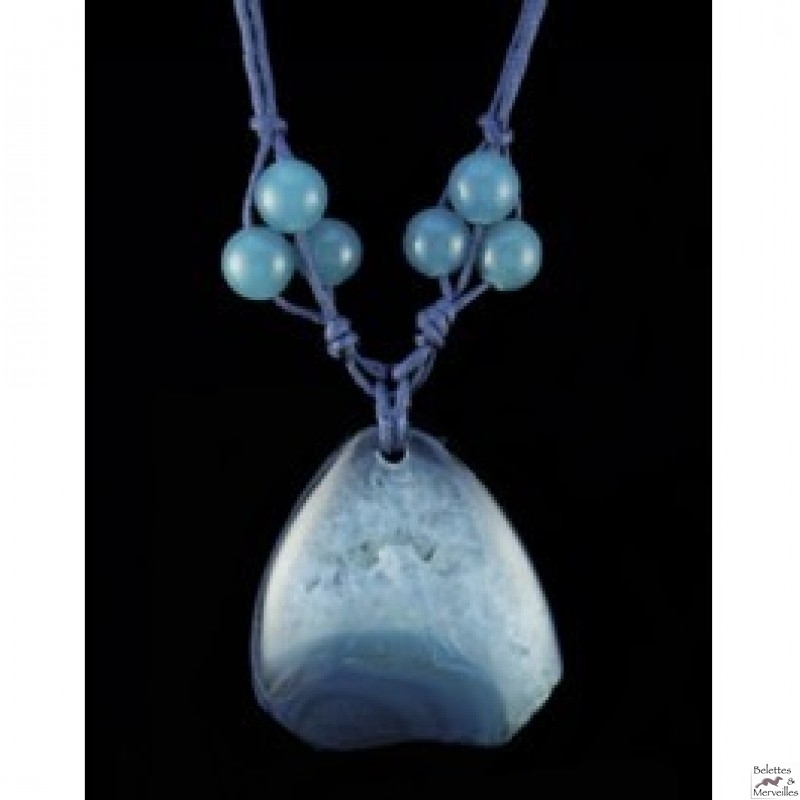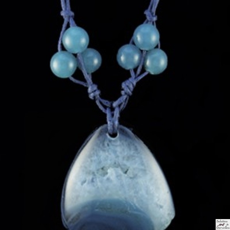 Agate en géode et perles de béryl.Indisponible.