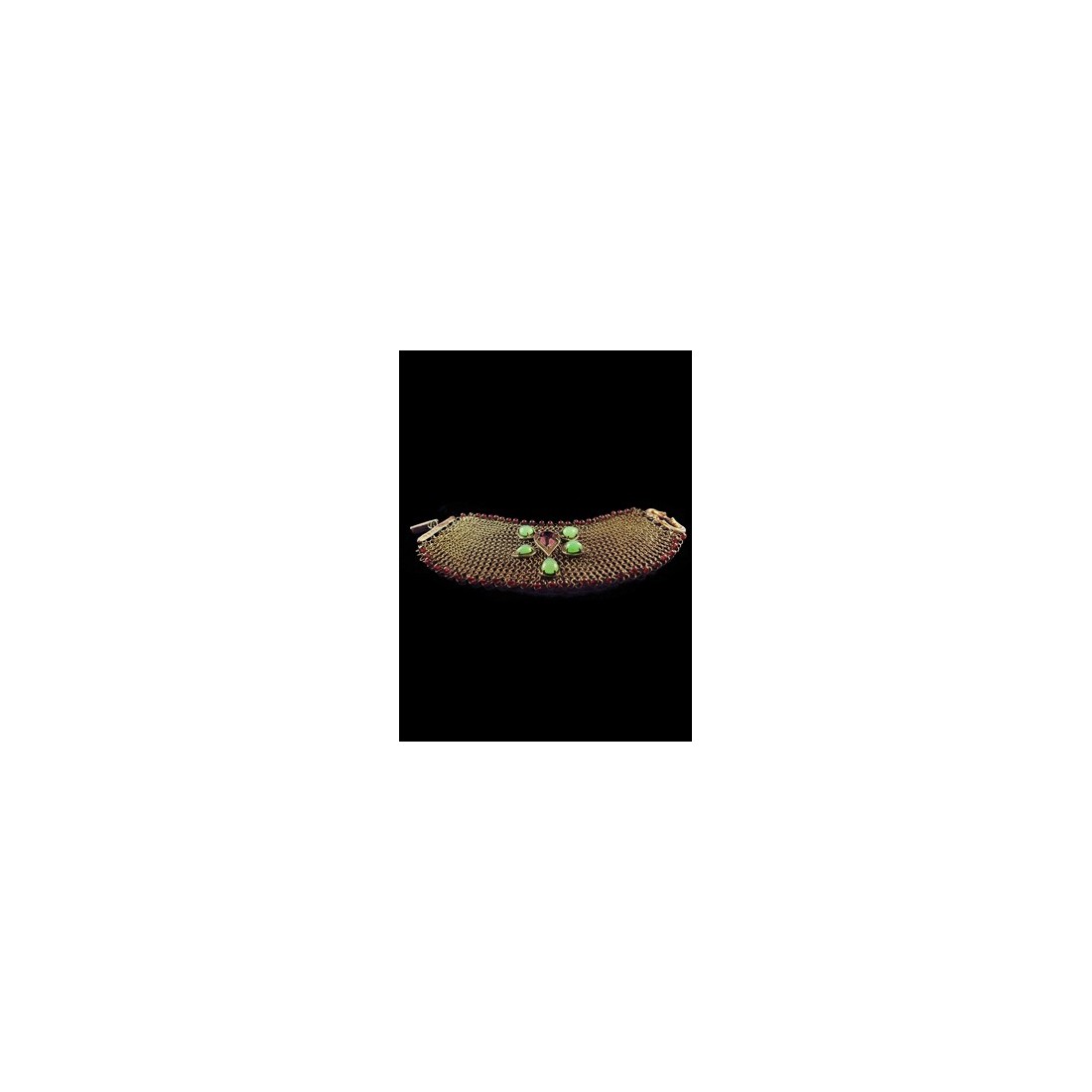 Bracelet en cotte de mailles d'acier, bordé et incrusté de pierres. 20 cm x 6 cm.